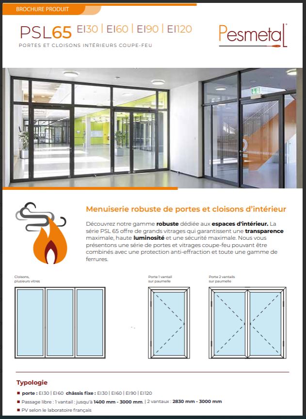 La série PSL65 est spécialement conçue pour les aménagements intérieurs ou la transparence et la résistance au feu sont prioritaires.
