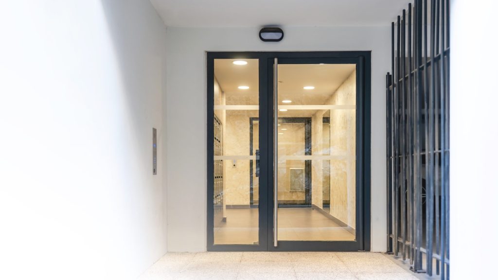 Pesmetal propose une large gamme de portes de halls d’entrée alliant élégance, robustesse et durabilité, destinées aux bâtiments résidentiels, aux copropriétés et au logement collectif.